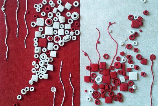 艺术系学生在专业教师的指导下就纤维设计的材料、色彩、艺术语言等方面进行了创新,采用麻线、铁丝、树枝、木材、铜丝、钢钉、棉絮等日常材料,设计出一批优秀的作品;作品形式多样,有贵州民族特色的马尾绣、家居立体装饰画、抽象软装饰品等,将传统与现代很好的运用到课程当中。