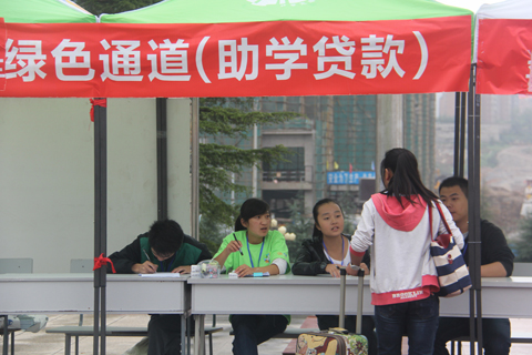 为确保家庭经济困难学生顺利入学,学院还专门设立了咨询台和“绿色通道”,为新生及家长讲解相关政策,指导学生办理相应手续,确保家庭经济困难学生能够按照国家的政策顺利入学。截止目前,申请助学贷款的新生已全部通过“绿色通道”办理了入学手续,没有发生因家庭经济困难而辍学的现象。
