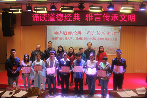 为了促进道德经典诵读活动的深入开展,帮助同学们更加深刻地领会道德经典的精神内涵,大赛结束后,学校精神文明建设领导小组特聘请了刘莉娜、李光华、刘军、邹尤、姚楠五位老师为贵州广播电视大学、贵州职业技术学院道德经典诵读文化志愿者。