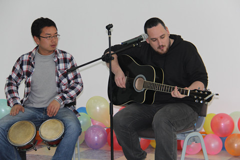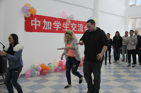 此次交流活动中我院学生与加拿大留学生以及经管系教师抽签分为四个小组,参与听中外文歌曲前奏猜歌名、筷子夹乒乓球跑、你比我猜等游戏,对于获胜的小组现场颁发小礼物作为纪念品。游戏间隙中国学生演唱了一首中文歌曲,加方留学生与经管系龚左林老师合作演唱了一首英文歌曲。加拿大堪那多应用文理学院院长乔治•伯顿、中国项目部主任蒲纯青在活动进行到中途时突临现场,亲切慰问了在场的老师与学生并参与现场游戏。