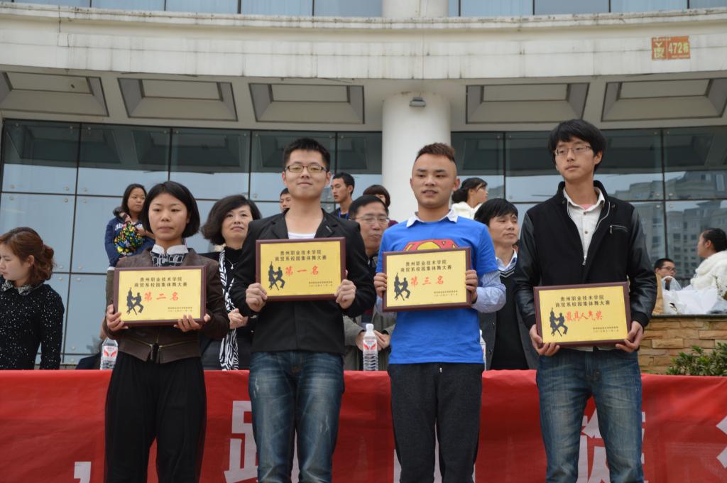 2013年11月4日中午13:00,贵州职业技术学院商贸系第二届集体舞大赛在校前广场拉开了帷幕。举行校园集体舞大赛是商贸系深化学生素质教育、践行学生“一日行为规范” 的一项重要举措。通过学习基本商务礼仪,培养学生的文明素养和审美情趣,提高合作意识和交际能力,帮助学生形成开朗、健康、乐观的个性。