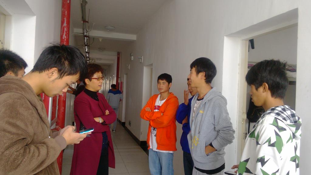 活动中辅导员老师与学生会干部分成7个小组,分别到学生居住的几栋寝室检查。孙燕副书记特别跟随其中一组队伍到F栋男生寝室检查,督促男生要搞好内务卫生,提醒学生要防火、防电、防盗,并与学生就学习生活等问题进行了交流。