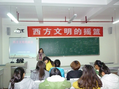 为帮助全院学生掌握英语学习的文化背景,了解西方文化的源头,对西方文化及大学英语课程有清晰地认识,11月12日下午2:30在我校C402教室,公共基础部陈莉娜副教授为我院师生进行了题为“西方文明的摇篮”的讲座。 讲座中,陈莉娜副教授以PPT为形式,从自然环境、居民,地理位置,文化渊源,体育等方面对古希腊做了简单地介绍;继而详细讲解了希腊的众神,尤其讲解了希腊的12位主神和荷马作品,让大家对希腊古代传说有了更深层次的了解。同时,陈老师重点以克里特文明和迈锡尼文明的发展为例,对爱琴文明的重大发现作出详尽说明。最后,她概括了古希腊在人文科学与自然科学领域取得的成就,展示了古希腊独特的艺术文化所体现的魅力。