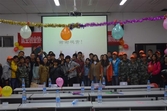 悠扬的歌声、欢快的笑声、激烈的掌声汇聚成一串串动听悦耳的音符在贵州职院的夜空中响起,为静谧的校园增添了一份色彩。2013年11月12日晚,为表彰院就业创业协会十佳干部和迎接新成员的加入,协会举办了一台精彩的晚会。本次活动由院招就中心主办,就业创业协会承办,团委、招就中心老师代表及学院各社团代表共170余人参加了晚会。
