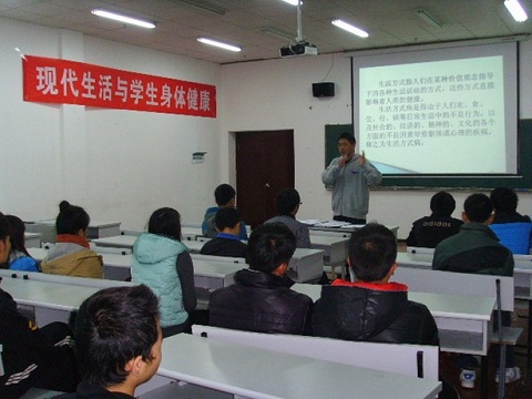 为了促进学生身心健康,丰富学生体育文化素养,公共基础部体育教师陈尉于2013年12月2日在职院B栋教学楼803多媒体教室举行了题为《现代生活与学生身体健康》的讲座,讲座主要讲三个方面:一是学习、工作压力对身体健康的影响;二是不规律的生活对身体健康的影响;三是运动不足对身体健康的影响。陈尉老师紧紧围绕大学生的学习压力、不规律的生活和作息时间、不爱运动等对身心健康造成的危害,列举大量的科学数据、实验,紧贴学生现实生活。讲座内容形象、深动,讲座过程实现了与学生的良好互动。