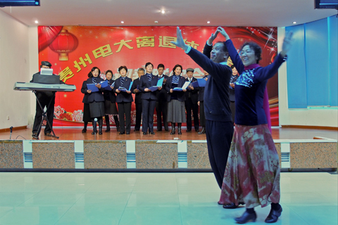 离退休干部处于12月10日下午在电大综合大楼三楼会场举办老同志迎新联欢会。我校老年大学声乐班、太极拳班学员和各党支部推荐的老同志代表参加了演出。节目形式丰富多彩,文艺演出受到老同志们的好评和欢迎。