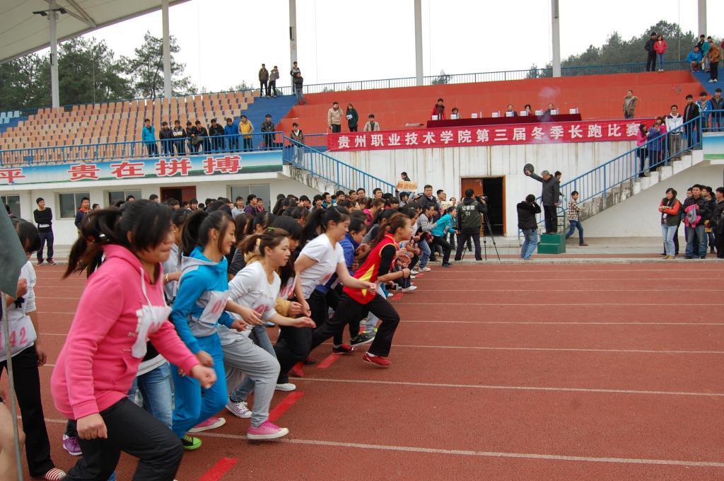 根据教育部、国家体育总局、共青团中央联合下发的《关于全面启动全国亿万学生阳光体育运动的通知》的文件精神,为切实推动学生阳光体育运动的广泛开展,吸引广大青少年学生走向操场、走进大自然、走到阳光下,积极参加体育锻炼,激励全院学生养成运动健身的良好习惯,以健康、奋进的姿态迎接期末考试的到来,2013年11月13日下午14点30分,贵州职业技术学院第三届“爱我校园”冬季长跑比赛在学院田径场顺利举行。院党委书记李近华、纪委书记郭万才、公共基础部主任陈国敏以及各系党总支书记参加了开幕式、观看了整个比赛并为取得优异成绩的运动员颁发了奖牌和奖状。郭书记致开幕词,李书记为比赛鸣枪开赛。为了如期进行比赛,公共基础部体育教研室进行了精心准备和周密的组织,各系团总支积极动员学生报名参赛(有164名同学报名参加,其中男子组106名,女子组58名)。比赛得到学院保卫处、后勤处的大力支持。经过紧张激烈的角逐,商贸系、经管系、信息系分别获得女子团体前三名,商贸系、工程系、信息系获得男子团体前三名。商贸系还获得优秀组织奖,能源系获得体育道德风尚奖,艺术系获得精神文明奖。