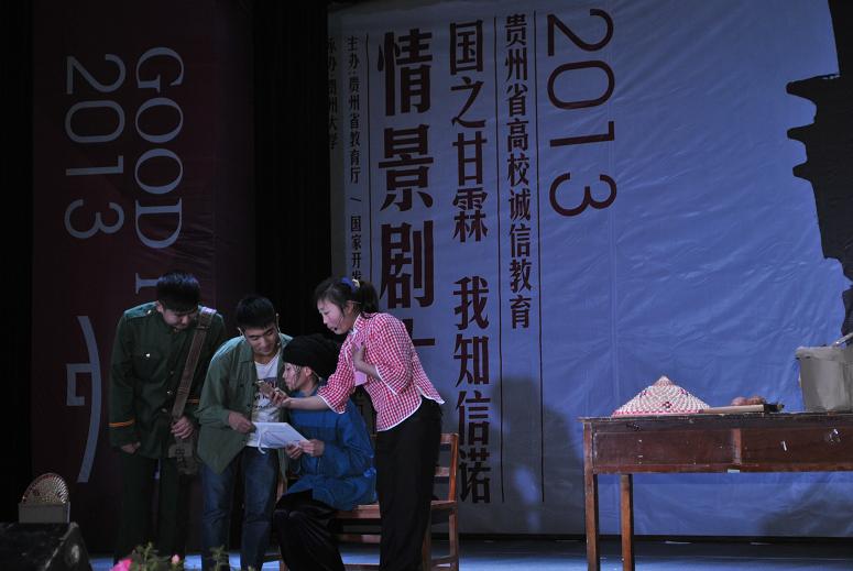 2013年12月17日,由贵州省教育厅、国家开发银行贵州省分行联合举办的贵州省国家助学贷款诚信教育情景剧大赛在贵州大学北校区大礼堂举行,我院学生资助管理中心选送的《雨露》参加本次比赛并获高职类院校第三名。