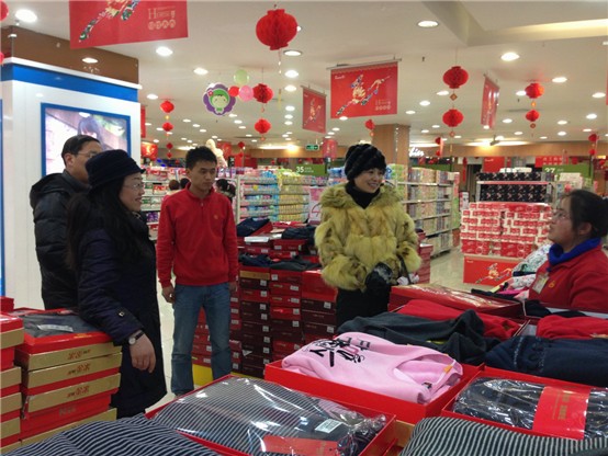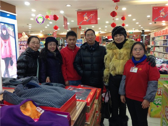 按照学院2014年1月2日例会精神,2014年1月14日,商贸系党总支书记刘德刚、副主任赵霖、基础部主任陈国敏、商贸系团总支副书记黄丽娟到永辉超市恒峰店看望实习生。