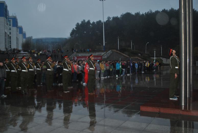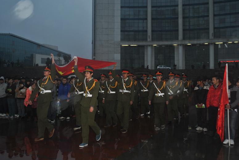 新学期,新气象。护旗队矫健的身躯,昂扬的斗志,展现了职院学子的良好风貌。尽管天公下着毛毛细雨,但广场上没有一点杂音,同学们神情庄严。