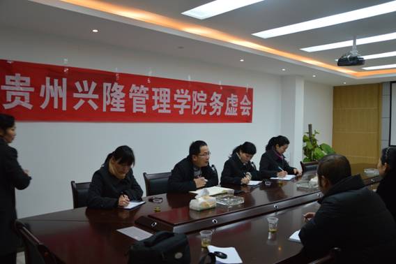 结合过去的2013和即将开展的2014全年工作,赵霖主任要求相关人员就奖学金设置、学生管理、招生计划、实习实训、教学科研五个方面作具体工作汇报。按照会议议程,黄丽娟书记首先就兴隆管理学院奖学金管理草案进行汇报;随后,辅导员赵盛梅就兴隆管理学院法律事务、社区管理及物业管理三个专业2013级新生的学习和思想状况进行汇报;兴隆管理学院监事、商贸系办公室主任张进则就2013年学院招生进行分析并就对2014年招生计划作详尽汇报;兴隆管理学院教学总监李桂勇会同辅导员赵盛梅就2013级学生顶岗实习、专周实训情况作汇报;最后,在全面听取汇报基础上,赵霖主任针对2014年兴隆管理学院教学实践、实训管理,科研课题的申报以及今年招生工作的宣传和开展,制定了具体的工作目标和计划,并要求大家不惧困难、心谋发展、狠抓落实,齐推共创兴隆管理学院美好明天。