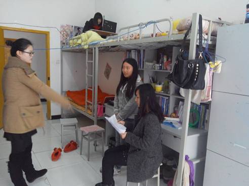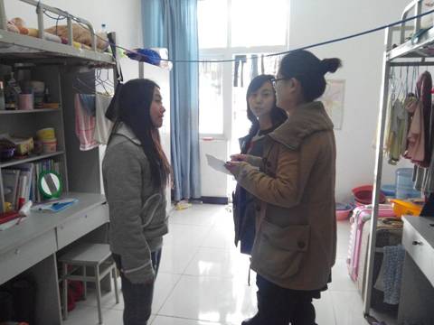 辅导员老师共分成9个小组,按楼层分配对学生宿舍I栋、A栋进行仔细排查,督促同学们搞好寝室卫生,强调安全用电,不能使用大功率电器、管制刀具等危险物品,同时对学生返校情况进行了检查登记。