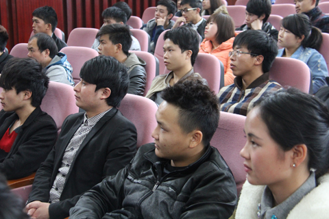 党委宣传部姚楠老师组织学习了全国“两会”精神,他从“梦想、责任、担当”三个方面,结合学校正在开展的党的群众路线教育实践活动,鼓励同学们要进一步端正学习态度,以高度的责任感、使命感,努力学习,做中国特色社会主义事业的接班人。