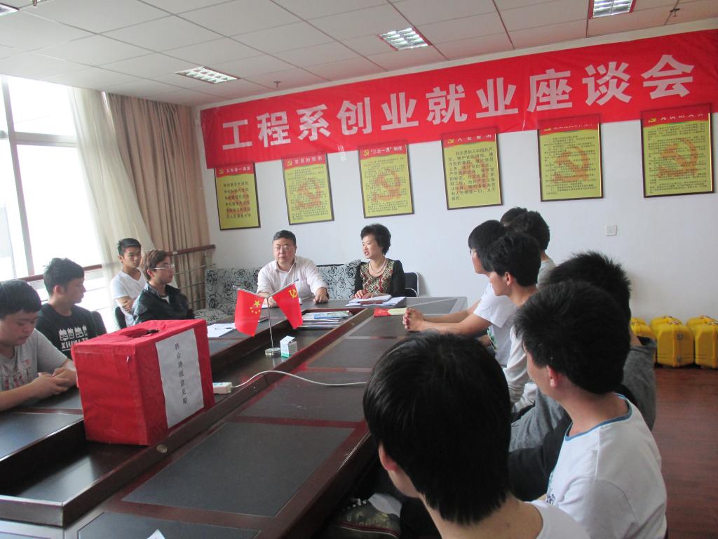 2013年4月18日,工程技术系2011级毕业生就业经验交流会在工程技术系322会议室召开。来自建筑工程、工程造价专业的2011级和2012级学生、工程技术系党总支书记周吉萍、系副主任韩跃武,团总支副书记陈娜、辅导员金维、董晟老师参加了交流会。