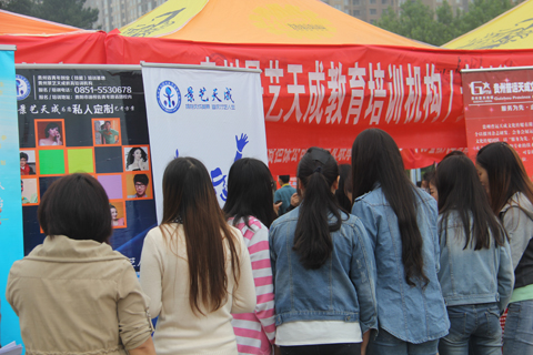 5月23日上午,2014年高校毕业生就业(创业)公益服务季暨贵州职业技术学院校园招聘会在校前广场隆重举行。此次招聘会共邀请了省内外各类用人单位124家,提供1万余个就业岗位类别,贵州职业技术学院2014届毕业生和2012级实习生3000余名参加招聘会。共青团贵州省委副书记刘锐,贵州省普通高等学校毕业生就业工作办公室副主任李洪瑞,贵州职业技术学院党委书记李近华,党委委员、副院长刘真祥、龚辉,党委委员、纪委书记郭万才出席招聘会。招聘会由郭万才书记主持。