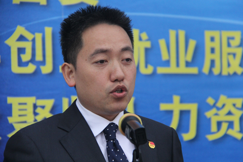共青团贵州省委副书记刘锐致词,他说,2014年全国大学毕业生达到720万余人,就业形势、就业压力依然严峻。他希望每一位青年朋友、大学生进入社会的起点站上,能转变观念,放下架子,在社会实践中努力提高自己的情商和智商。希望承担劳务输出的各类企业为用工企业和应聘人员之间提供最有效、最优质的服务;希望各用工企业要加大自身的宣传推介力度,以优越的务工环境、丰厚的务工报酬吸引人、留住人。