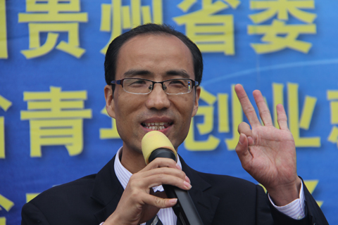 贵州省婚庆行业协会会长、贵阳百年传奇婚礼庆典有限公司总经理黄国忠先生代表受聘的优秀企业家发言。他首先感谢共青团贵州省委、贵州省教育厅、贵州职业技术学院领导长期以来对其工作的支持信任,承诺将恪守就业创业导师职责,真情为学生排忧解难,毫无保留地将自己的创业经验和工作经验传授给学生。最后他倡议广大企业要自觉投身到大学生的培养中来,不仅为学生顺利就业提供帮助,也为自己企业的成长提供源源不断的智力支持。