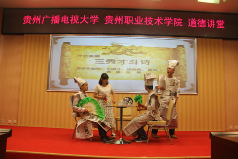 青春实验班的同学在本次论坛中表演了名为“三秀才斗诗”的小品,其诙谐的表现将比赛时紧张激烈的气氛转化为轻松幽默的氛围。