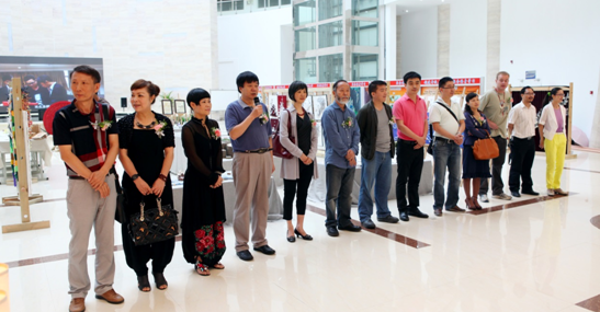 贵州广播电视大学(贵州职业技术学院)副校长刘真祥、贵阳市美术家协会主席、贵阳画院院长、著名画家曹琼德,贵州多彩雪飞文化旅游商品有限公司董事长、著名设计师林雪飞,贵州工艺美术研究所所长、贵州陶瓷艺术协会会长、全国陶瓷艺术大师岳振,贵州女画家协会副会长、著名画家王瑛教授,贵州省服装协会会长郭修光,贵州雕塑院院长、雕塑家李刚,贵州民族大学教授、著名画家周静,贵州师范学院职业技术学院副院长、设计师聂森,贵州省建设职业技术学院艺术分院张强院长,贵阳学院苟菊兰教授以及贵阳各高校艺术设计专业师生出席了开幕式。