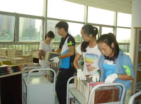 搬运过程中,志愿者们不停地将下架的图书放上书车运至五楼,再将图书搬放到指定位置。持续不断的搬运,志愿者们挥汗如雨,汗水浸湿了衣衫,仍一个个干劲十足,没有一个人叫苦,没有一个人离开现场。他们的行动,让一同搬运的图书馆工作人员无不为之感慨:都说90后娇生惯养,怕吃苦,但从志愿者身上,看到的却是吃苦耐劳无私奉献的精神和为人民服务的热情。
