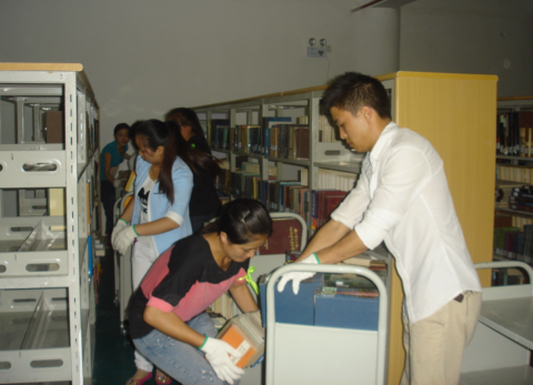 经过两个多小时的紧张搬运,6500册馆藏工具图书顺利转移到五楼备用书库。看到书库整齐排放的图书,志愿者们露出了欣慰的笑容……他们中的大多数人,来不及休息,擦擦汗马上赶赴下午的课堂。