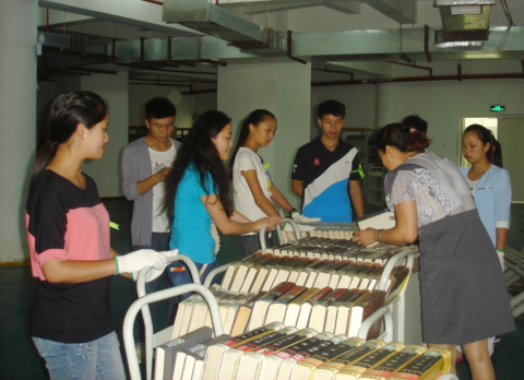连日的暴雨,图书馆一楼书库工具图书受潮长霉。为了不让国家财产受到损失,不让几千册图书毁于霉烂之中,6月25日中午,贵州职业技术学院青年志愿者协会的十多名志愿者,在我院图书馆工作人员的组织带领下,将图书馆一楼工具图书库里的一摞摞厚重的图书搬到五楼书库。