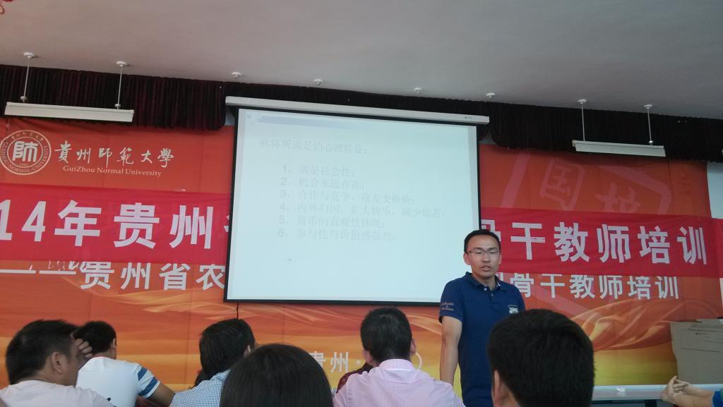 2014年6月23日至27日,基础部教师杨小燕参加了贵州省教育厅组织的2014年贵州省心理健康骨干教师培训班学习。此次培训由贵州师范大学具体实施,全省部分学校的心理健康教师参加。培训的内容包括《团体心理辅导实操》、《学生心理健康水平调查及档案建立》、《学生心理问题的时代性符号的深层解读》、《校园心理健康教育工作之朋辈营》、《绘画心理治疗》、《校园心理危机事件处理与干预》等。丰富的内容对参训教师业务素质提高起到较好的作用。在最后一天的经验总结与分享中,学员们纷纷表示感触良多,受益匪浅,希望将来有更多培训学习的机会。