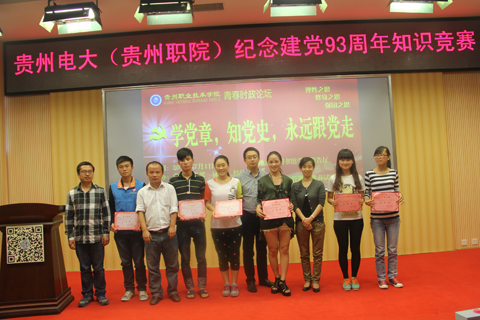 为了隆重庆祝中国共产党成立93周年,营造浓厚的纪念氛围,2014年7月1日晚7:00,在我院图书馆学术报告厅举办了由党委组织部、党委宣传部、团委、经济管理系主办,学生记者团、青年马克思主义研究会、经济管理系青春实验班承办的,以“学党章,知党史,永远跟党走为主题的知识竞赛。出席本次活动的有:党委宣传部、统战部部长张仁俊老师,团委副书记陈鹰老师、党委宣传部姚楠老师、经管系龚左林老师。