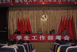 为了进一步加强学院学生干部思想教育,了解学生工作中存在的问题以及部署本学期学生工作事宜,学生处于3月13日下午三点在行政楼九楼会议室召开了学生干部工作部署会。会议由学生处吴异老师主持,学生处处长于立群、副处长赵景铮、学生处相关工作老师及所辖社团全体学生干部参加了此次会议。