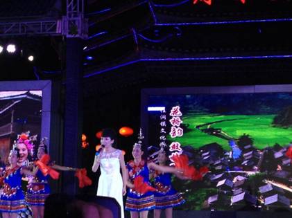 3月14日晚上八点,往洞镇“花桥韵 鼓楼魂”专场演出在传统民俗剧《斗牛》喧嚣的锣鼓声中拉开了序幕,此次晚会的主持由我院艺术系老师杜鹤鹤和学生牛孝然担任。在晚会现场,既有传统民族文化节目侗族大歌《想郎歌》、琵琶演奏合唱《美丽风雨桥》等、也有反映新农村生活的小品《新农村》、现代舞蹈《校园风采》等,特别是我校选送由高校校园歌手大赛一等奖丁柯同学演唱的《海阔天空》,获得了现场观众热烈的欢呼和掌声,整场晚会的压轴节目是我院艺术系青年教师陶艺丹老师演唱的《好运来》,更是将晚会推向了高潮。