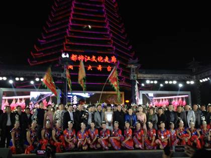 为活跃城乡群众文化生活,促进优秀民族文化传承,从江县策划安排了为期一年的“周末大舞台”文化惠民活动,由辖区每个乡镇轮流主办专场晚会。往洞镇作为我校的党建扶贫点,在去年就已经开始筹备晚会,并联系我校希望利用我校自身优势资源,给予一定的专业指导和支持。2015年3月14日,在学院党委委员、纪委书记郭万才的带领下,团委副书记陈鹰以及团委王永峰老师、经管系龚左林老师、艺术系杜鹤鹤老师、陶艺丹老师,以及艺术系学生丁柯、牛孝然一行人来到从江县城参与整台晚会指导和节目表演。
