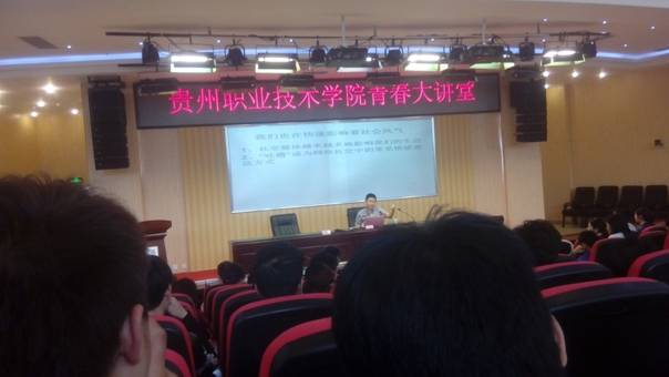 2015年4月1日下午,《中国青年报》驻贵州记者站站长白皓应邀到我院图书馆二楼学术报告厅进行“青春大讲堂”专题讲座,院团委副书记陈鹰出席讲座,来自各系部的247名同学聆听了讲座,经管系团总支副书记龚左林主持讲座。