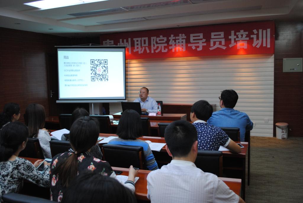 为了全面提升辅导员职业生涯规划基本技能,切实为学生的未来发展提供高效服务和指导,学生处特邀请贵州财经大学学工部部长、GCDF全球职业规划师、KAB创业教育导师、贵州省大学生创业学院创业导师周晶于4月2日下午2:30分在学院5楼会议室为全体辅导员做了题为“辅导员之基本技能职业生涯规划”的知识讲座。