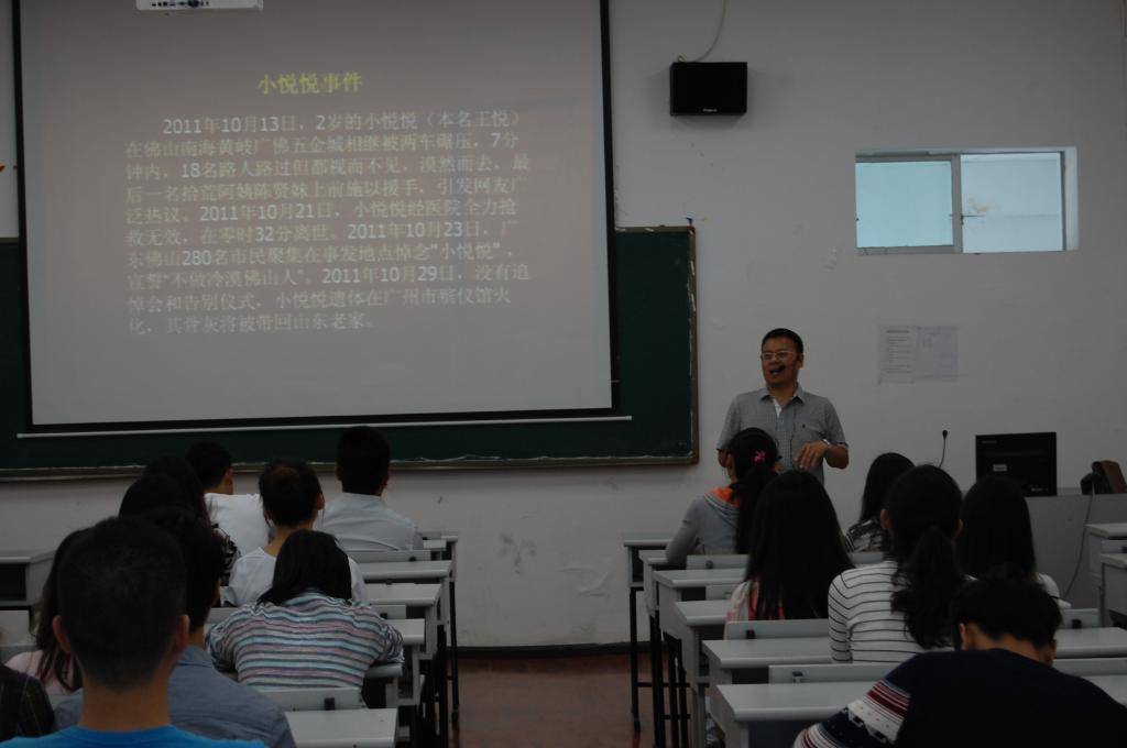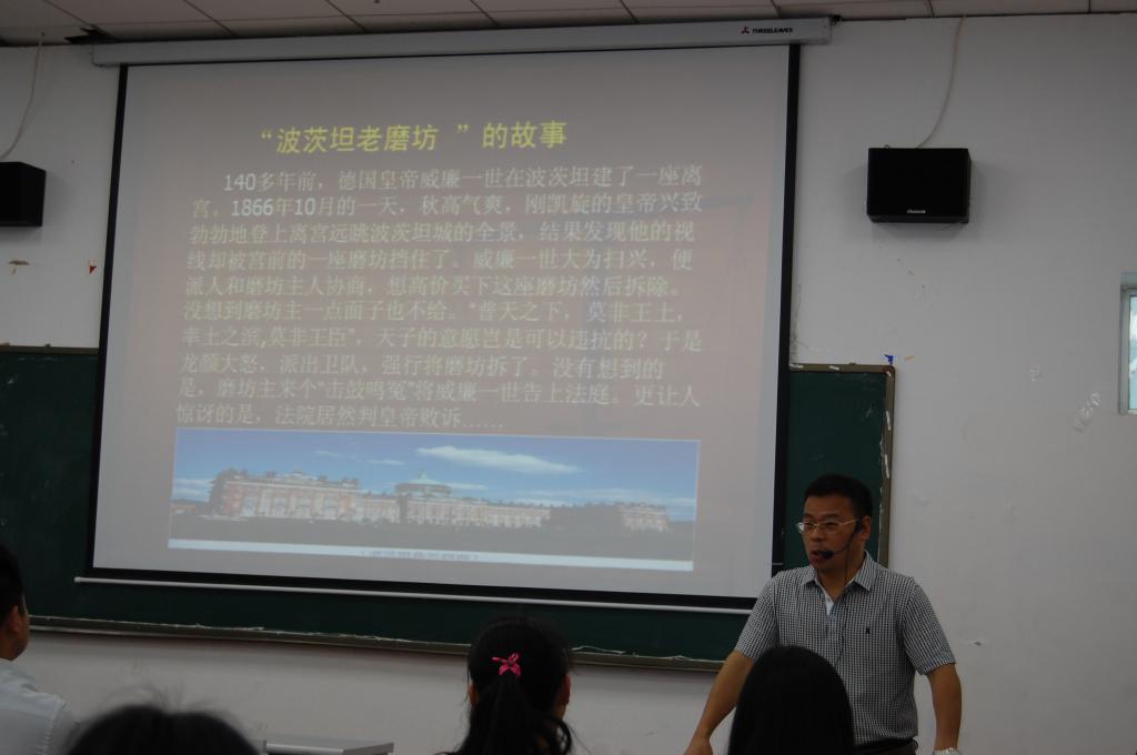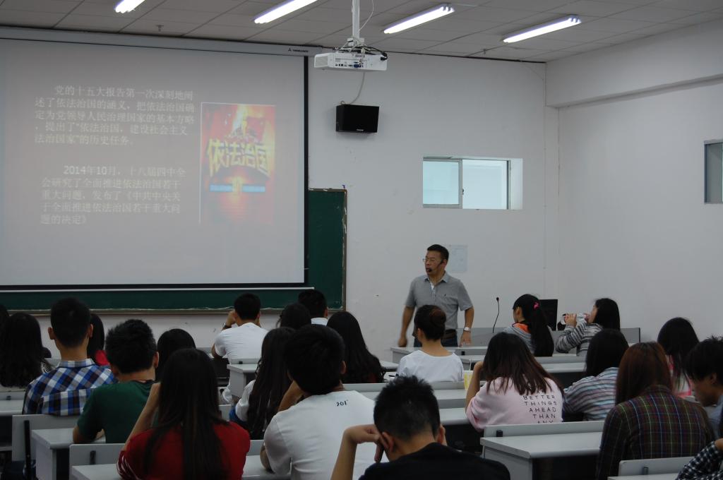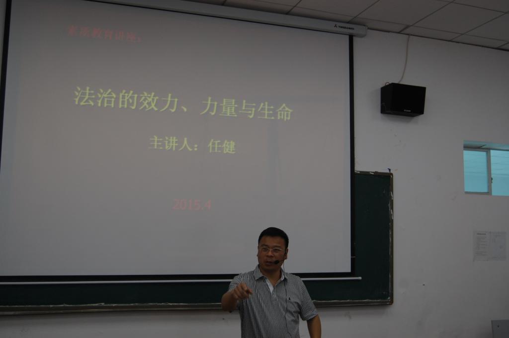 为了提高同学们的法律素质,树立社会主义法治观念,公共基础部任健教授于2015年4月3日下午在B栋教学楼803教室做了一场题为《法治的效力、力量与生命》的主题讲座。公共基础部部分教师和来自全院各系的近200名学生参加。