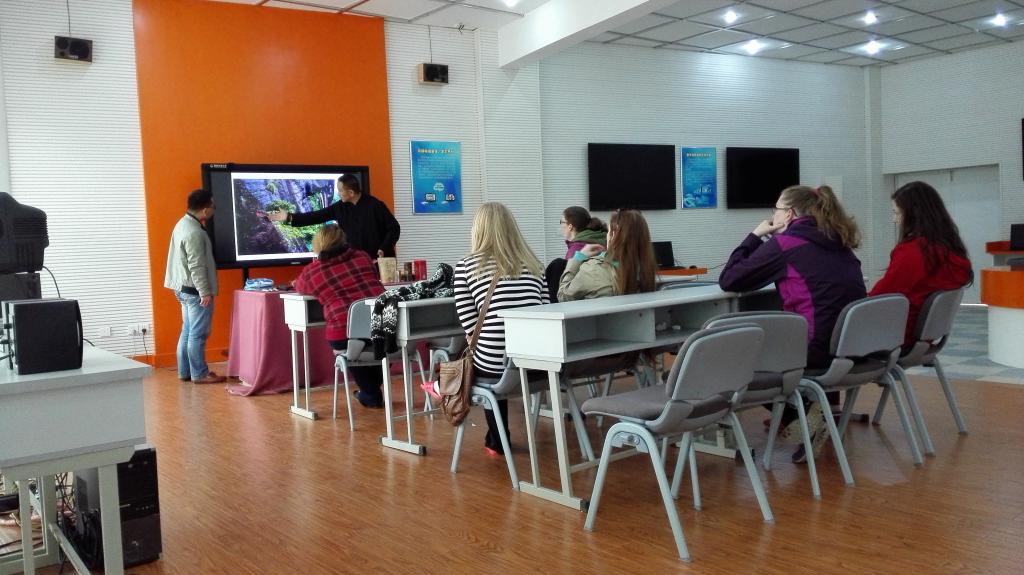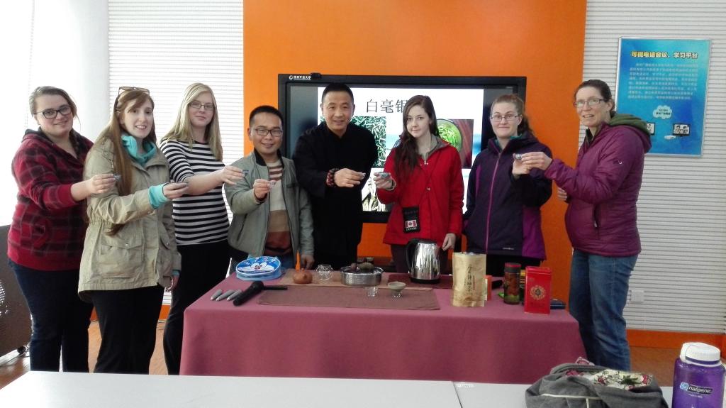 4月8日下午,院图书馆一楼数字化教室传出悠扬的古琴曲,在《梅花三弄》古琴声中,公共基础部敖军副教授给加拿大留学生讲解了中国茶文化的神奇魅力,马继伟老师担任本次课程的翻译。