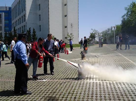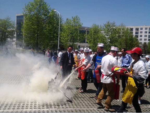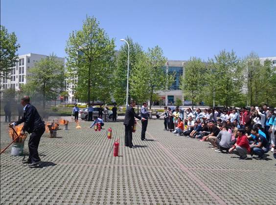 为认真贯彻落实省综治委校园及周边治安综合治理专项组办公室关于印发《2015年全省校园及周边治安综合治理工作要点》的通知(黔校园安全组〔2015〕3号)、《省教育厅办公室关于做好2015年春季开学学校安全工作的紧急通知》(黔教办安稳〔2015〕65号)和学校2015年校园及周边治安综合治理工作计划、实施方案精神,有效预防各类突发事件时能有条不紊地疏散师生远离事发现场,确保学校全体师生、员工的人身财产安全,2015年4月15日13:00时,由保卫处牵头,后勤管理处、经管系、能源系、信息系、商贸系、工程系、艺术系、中职校、物业公司等部门共同参与,组织我校师生及食堂、物业公司的300余名师生、员工在B栋教学楼、一食堂对面的空旷地带进行了防灾减灾应急疏散演练和灭火器材的使用培训。