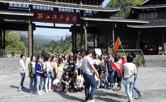 2015年4月15日(星期三),经济与管理系旅游管理专业14级全体学生在任课教师黎国玉、顾佳琪的组织带领下,进行了一次丰富多彩的从“贵州职业技术学院——西江千户苗寨”一线的室外景点教学。
