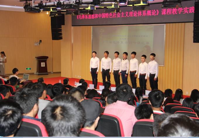 探索思政课如何适应高职学生特点,“在做中学、在学中做”怎么体现在思政课教学中?如何真正让思政课受到学生欢迎,使学生终身受益。公共基础部思政课教师进行了一系列的尝试。《毛泽东思想和中国特色社会主义理论体系概论》课程实践教学——《毛泽东诗词吟诵》比赛于2015年4月16日下午,在学院图书馆学术报告厅的成功举办。正是这种尝试之一。
