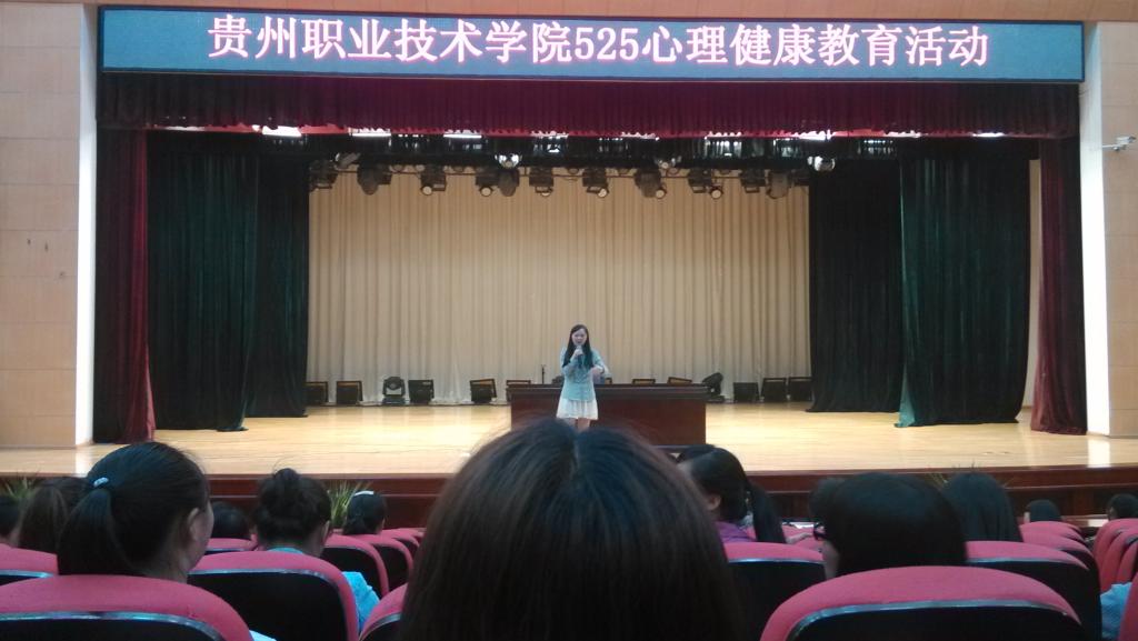 带领学生度过一个有意义的525大学生心理健康日,提醒学生“珍惜生命,关爱自己”,增强学生关爱自我、了解自我、接纳自己、关注自己心理健康和心灵成长的意识,提高学生自身心理素质,进而培养学生爱别人,爱社会的态度和情感。5月25、26两日 19:00——20:30,公共基础部心理健康教育咨询中心根据心理健康教育课程要求,组织14级商贸系、经管系、艺术系全体学生在学院大礼堂参加了两场引人深思的讲座。