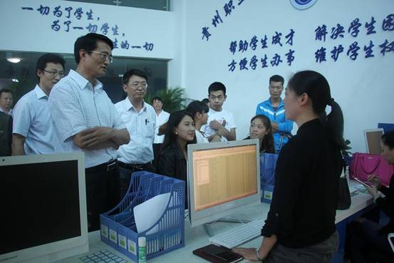6月4日下午,由省教育厅组织的以贵州理工学院党委副书记宋广强为组长,贵州大学学工部部长郭林桦、贵州师范大学学工部部长任胜洪、贵州师范学院学工部副部长刘红玲、贵州理工学院学工部副部长顾亚丽、贵州商学院学工部副部长田歆、黔南师范学院学工部部长莫小平和省教育厅学生处张加超为成员共8人的专家组莅临我校检查指导学生事务中心的建设工作。
