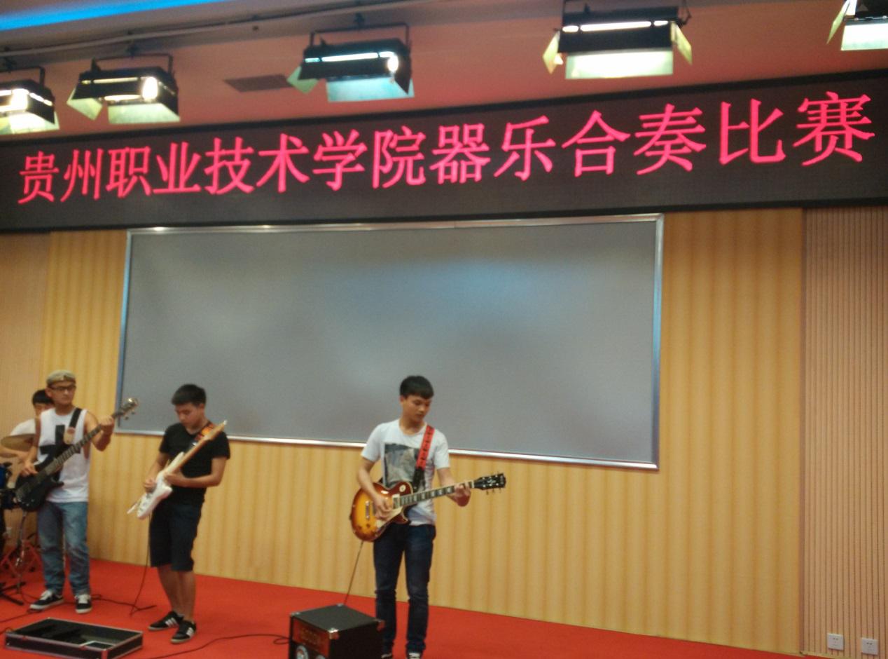 在简短而热烈的开幕式后,在座的老师与学生共同欣赏了艺术系石怡同学演奏的《卡农》。以及石怡、岳亮 同学演奏《雪绒花》、《绿袖子》,经管系“贵州职院”乐队为演奏的《the words》等曲目,精彩的表演获得了现场观众的阵阵欢呼和掌声。这两只优秀的乐队也将参加在贵州民族大学举办的全省决赛,让我们期待我校选手在全省的决赛中取得优异的成绩。