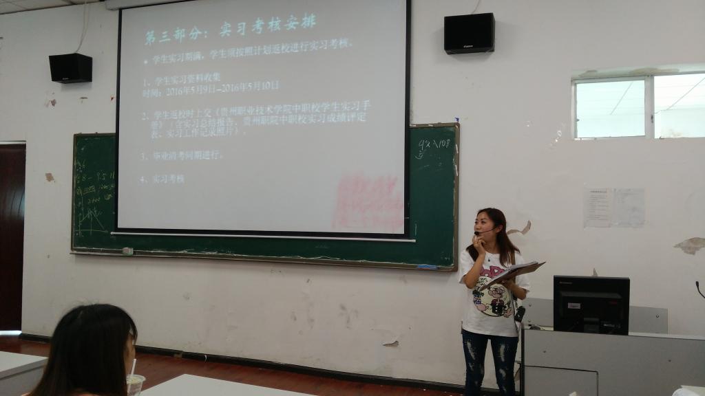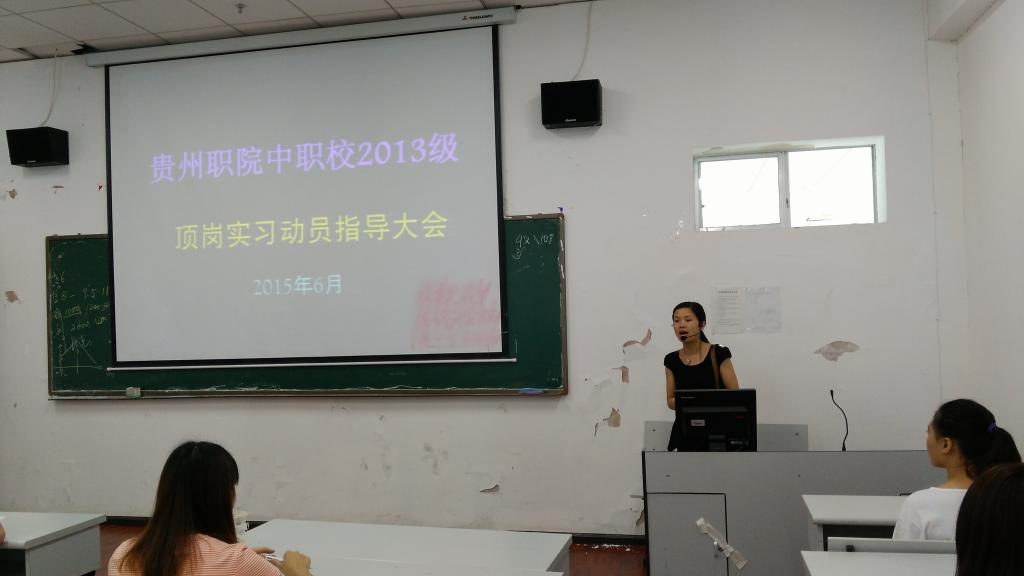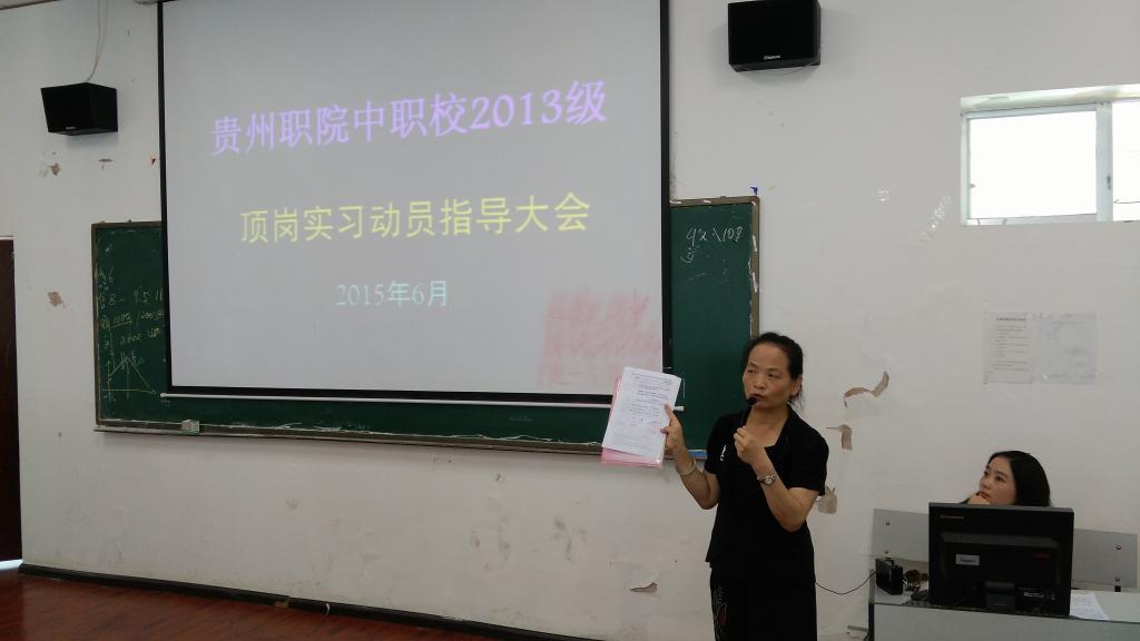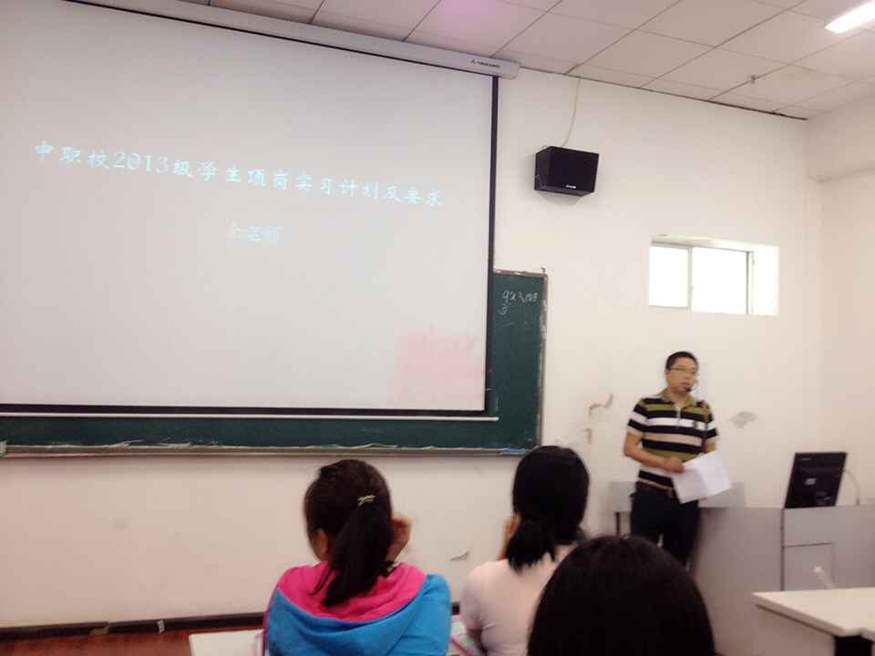 为进一步做好2013级学前教育及建筑工程施工专业学生顶岗实习工作,让学生提前做好顶岗实习准备,6月25日下午,中职校在B802多媒体教室举行2013级学生顶岗实习动员大会,中职校教务科余老师,实习指导教师郑老师、聂老师及班级辅导员出席了本次大会并做发言。