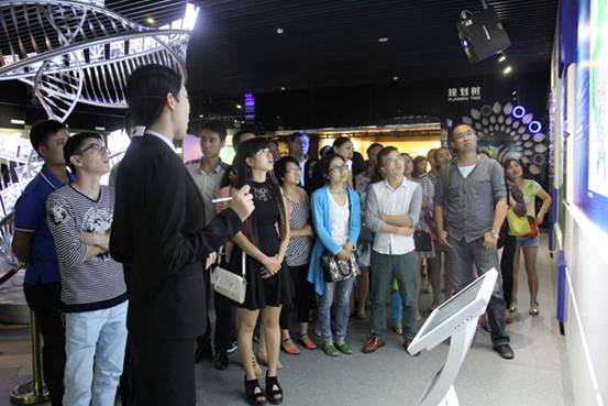 展厅里的贵阳市中心城区规划模型和数字沙盘,不仅可观览实体模型的逼真效果,又能感受数字沙盘带来的海量信息,规划模型与数字沙盘相互辉映,全方位的全景展示贵阳城市发展现状和美好未来。当超大的LED大屏幕播放贵阳未来生态新城的景观时,一种强大的视觉冲击力感染着每一位教职工。
