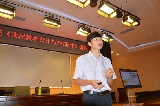 张俞副教授从教学实际出发,与大家分享了为什么写教学设计、如何写教学设计和如何做好PPT三个方面的经验;黄守峰讲师着眼于PPT制作观点可视化,在黄老师风趣幽默的讲解和轻松愉快的互动中,老师们进一步掌握了PPT制作的方法和技巧。