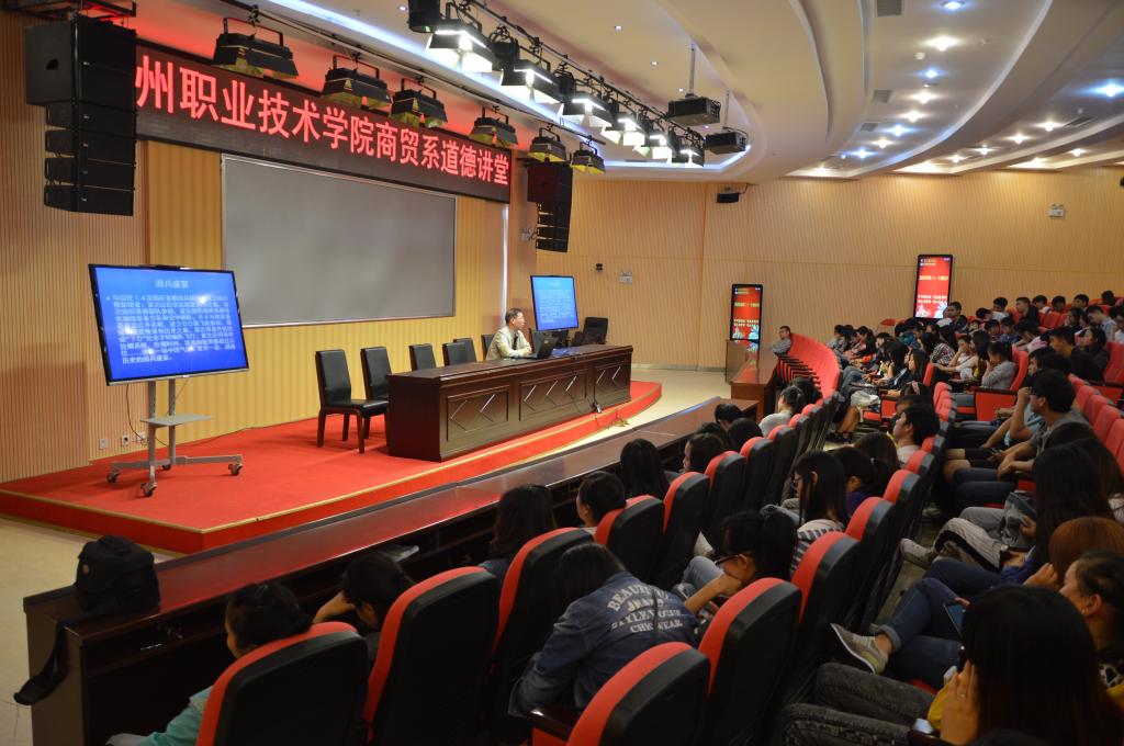 为了提升学生道德素养,形成良好的校园道德风尚,于2015年9月14日19:00,商贸系党总支书记刘德刚在我校图书馆二楼学术报告厅主讲了了题为“纪念抗日战争胜利70周年”的道德讲堂。