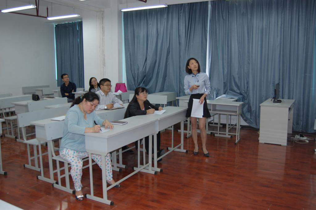 为保障教学的正常运行,提高我院教学水平,根据我院“教师教学工作规程(试行)”的要求,公共基础部2015年9月17日上午在B604教室开展开展了说课教学活动。本次说课活动是在5名准备接受教学任务的行政人员进行。公共基础部基础教研室主任朱怡蓉副教授主持本次教学活动,教务处副处长张涤以及5个评委教师参加。