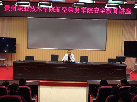 2015年10月8日、9日晚7点,贵州职院中职校邀请学院保卫处罗处长在图书馆二楼报告厅为航空乘务学院2015级400名中职学生开展了两场安全教育讲座。