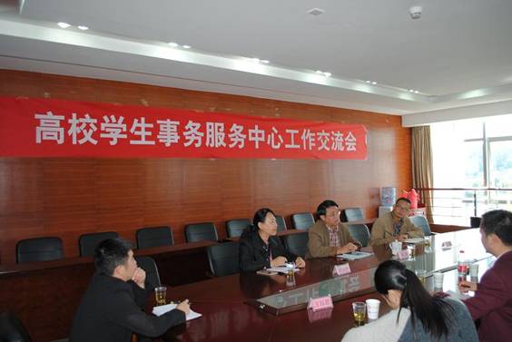 10月12日,我校“一站式”学生事务服务中心“示范点” 联系指导单位贵州航天职业技术学院和贵州师范大学求是学院到我校学习交流学生事务服务中心工作。学校副校长徐伟、学生处副处长赵景铮、团委副书记陈鹰热情接待了两兄弟院校并进行了深入的交流活动。