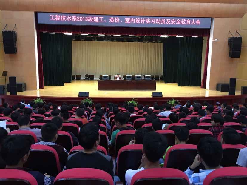 10月20日下午,工程技术系2013级建工、造价、室内设计实习动员及安全教育大会在大礼堂召开。工程技术系副主任韩跃武、各专业实习指导老师、辅导员、2013级实习学生参加大会,陈娜老师主持会议。
