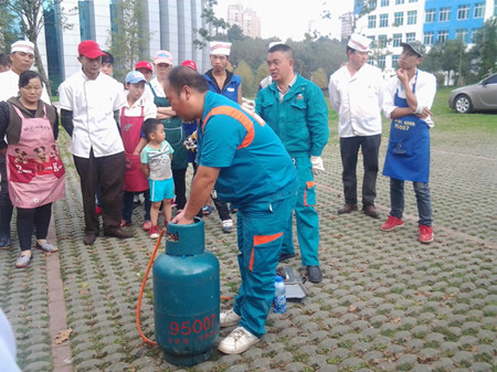 为认真贯彻落实省综治办、省公安厅、省教育厅和学校有关校园安全稳定文件精神,切实加强校园及周边治安综合治理工作,全力维护校园安全稳定,2015年10月24日14:00时,学校保卫处、后勤处邀请百江西南燃气有限公司到校,为我校食堂的各经营户开展了一次燃气安全实操培训。